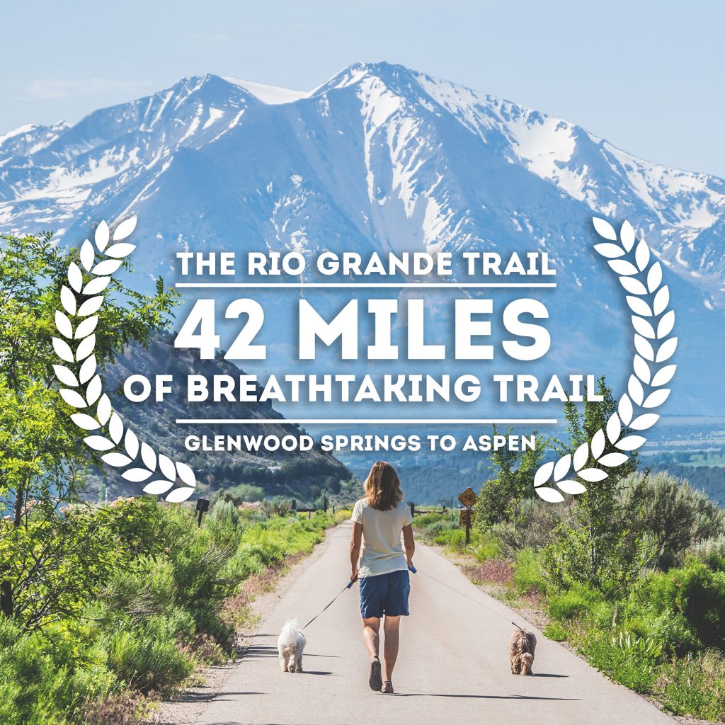 The Rio Grande Trail runs the entire length of the Roaring Fork Valley from Aspen to Glenwood Springs. The 42-mile long multi-use trail is built along the historic Denver and Rio Grande Western Railroad corridor where train operations ceased in phases, between the 1960s and mid-1990s.